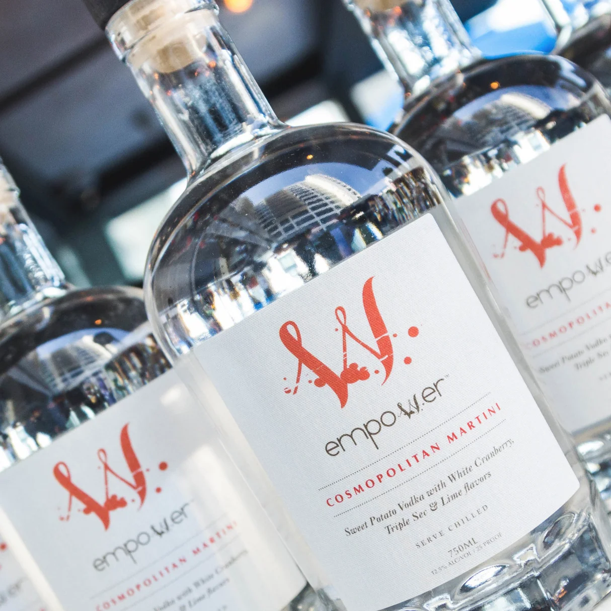 Tiffany’s first cocktail is the delicious and refreshing Empower Cosmopolitan Martini. It contains Sweet Potato Vodka that comes straight from a family owned farm in Northern California as well as triple sec, white cranberry and lime. Empower is 25 proof and 80 calories per 3 oz. It is best consumed chilled (do not place it in the freezer). All you need is a martini glass and a lime garnish!